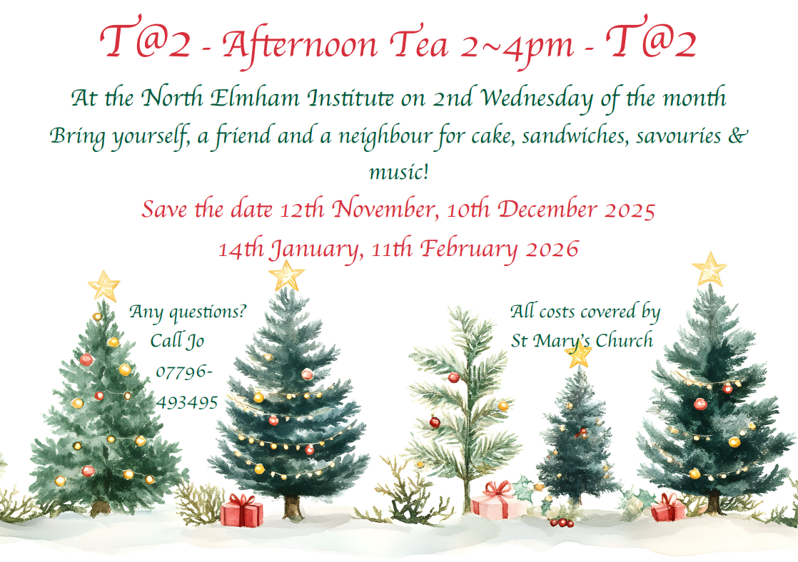 All welcome to Afternoon Tea at the North Elmham Institute, 2nd Wednesday of the month.